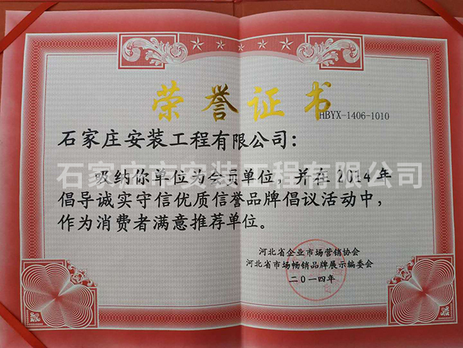 消費(fèi)都滿意推薦單位榮譽(yù)證書